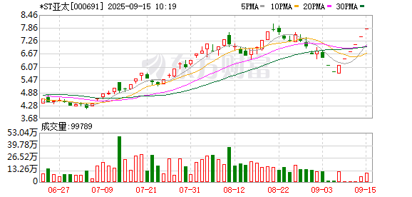 *ST亚太(维权)盘中涨停,已连收6个涨停板,罢休9:27,该股报7.81元,换手率1.43%,成交量462.17万股,成交金额3609.55万元,涨停板封单金额为2073.63万元。连合涨停时辰,该股累计上升33.96%,累计换手率为7.66%。最新A股总市值达25.25亿元。